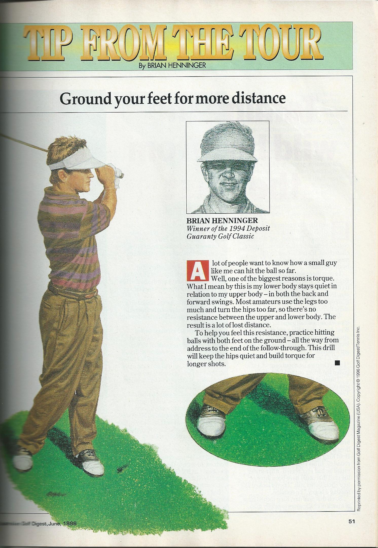 A short but effective article in relation to grounding your feet. According to Brian Henninger, who states that he is a small guy, one of the biggest reasons for him being able to hit the ball so far is due to his torque. What he means by this is his lower body stays quiet in relation to his upper body, in both the back and forward swings.