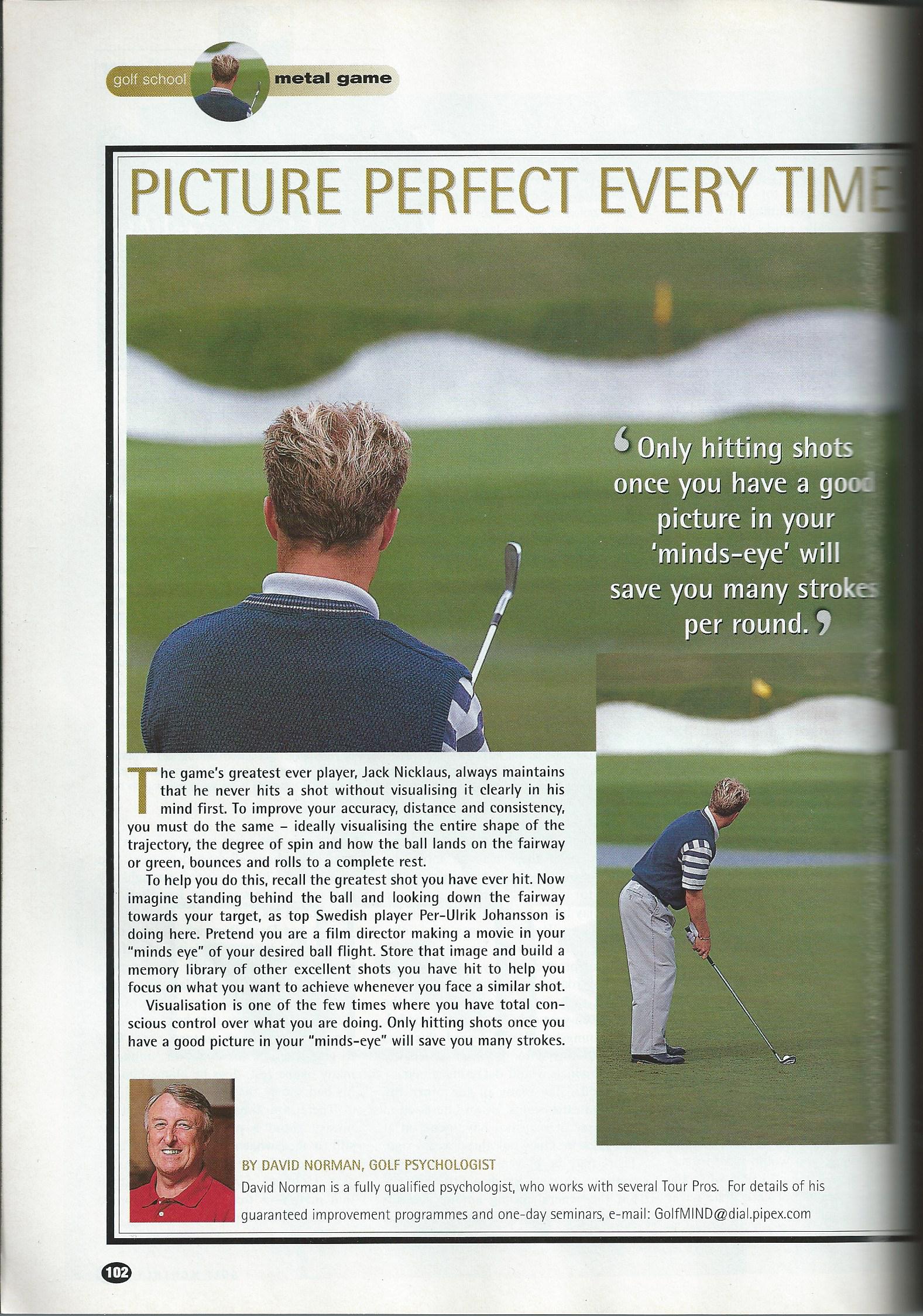 Visualisation is one of the few times where you have total conscious control over what you are doing. Only hitting shots once you have a good and clear picture in your ‘mind’s eye’ will save you many strokes.
