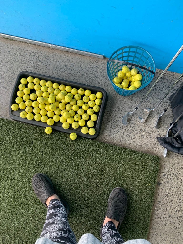 After my (third) lesson with Lisa Jean today, which which all about putting and chipping, and then hit 100 balls at the driving range.